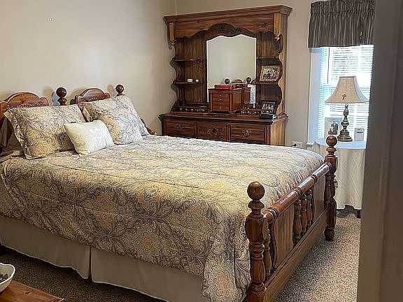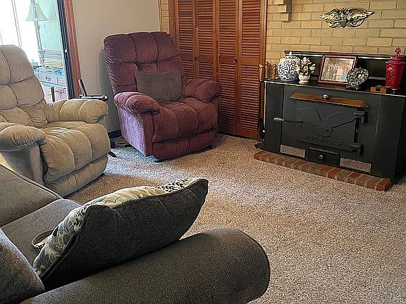 Kitchen and breakfast room have laminate flooring. Dining room, den, living room and bedrooms are carpet. A detached garage of 682 sq. ft. Located on property are several sheds and an old pole shed. Heat and cool with gaspac. Natural gas and city water. Security system with priority one. House is in excellent condition with washer/dryer, stove, refrigerator and dishwasher.
