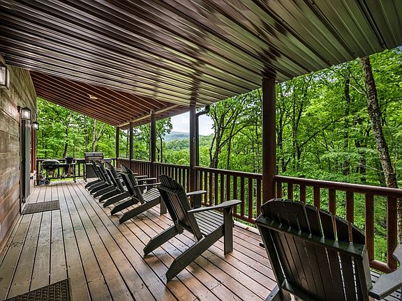 Searching for a cabin that feels brand new and loaded with updates? This retreat is the perfect mountain getaway. This remodeled, beautifully maintained, and furnished cabin perfectly blends rustic mountain charm with modern sophistication, offering sweeping year-round mountain views—a must-see that's even more breathtaking in person. Step inside to find three inviting bedrooms, three full bathrooms, and a large loft area, ideal for relaxation or accommodating additional guests. The open-concept great room impresses with a striking stone fireplace as the centerpiece of the main living space, soaring vaulted ceilings, and warm wood accents that create a cozy yet upscale atmosphere. The renovated kitchen is a showpiece, filled with natural light and featuring a breakfast nook framed by daylight, granite countertops, and a central island perfect for culinary adventures or entertaining friends and family. The oversized master suite is a private sanctuary, complete with its own porch—perfect for savoring quiet mornings, colorful sunsets, or simply soaking in the serene mountain setting. Outdoor living shines with two upgraded covered porches that provide plenty of space for entertaining, dining al fresco, or unwinding in the crisp mountain air. The newly finished terrace level was designed with entertainment in mind, boasting a stylish wet bar, an additional living area, a spacious bedroom, and a full bathroom—perfect for hosting guests or creating a private retreat. Beyond the cabin, you'll love Ellijay's vibrant community—the “Apple Capital of Georgia”—with orchards, wineries, farm-to-table dining, and a charming downtown of shops, breweries, and seasonal festivals. Outdoor lovers can enjoy the Cartecay River, Lake Blue Ridge, and endless hiking and biking trails, making this the perfect spot for both adventure and relaxation. Ideal as a weekend escape, full-time home, or rental investment, this property offers the best of Ellijay living in the North Georgia Mountains.