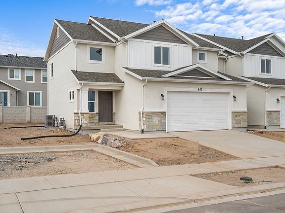Recently completed and BEAUTIFUL! This is NOT your average townhome, you'll love the feel and finish of this HUGE home. Revere Homes has gone all out to provide one of the best values you'll find in Utah County! This beautiful unit features 3 beds/2.5 baths, room to grow in the unfinished basement, upstairs laundry, and a master suite you'll love! Includes upgraded stainless steel appliances, white kitchen cabinets with "Driftwood Rustic Alder" island and bathroom cabinets, quartz countertops, LVP/LVT and carpet flooring, smart thermostat, and a craftsman-style exterior. Oversized 24'x24' garages are also included, which you won't find anywhere else! Special interest rate of 5.25% for a FIXED 30-year FHA loan!! Only available when using Seller's preferred lender, not all buyers will qualify. Units are now complete and ready to occupy, Supra keybox access.