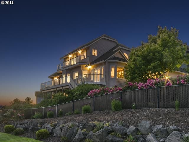 Spectacular views of Mt Hood, Mt Jefferson, Columbia River, Portland City Lights & PDX. Master on Main. All new SS appliances, Granite Slab, & Cabinets, Double ovens, Heated Tile Floors, WI-Pantry. Frig stays. Natural gas to deck for BBQ. 2 AC units-2 years old. 1943SF unfinished basement-roughed in, wired & plumbed can be used as quest quarters w/ separate entrance. New Trex Decking. VIEW!
