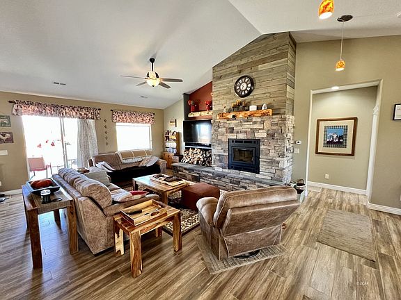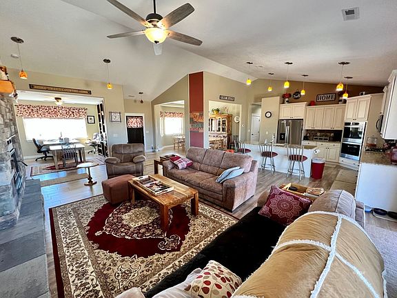 Welcome to this stunning 3-bedroom, 2-bathroom home in Spring Creek, NV, where breathtaking views of the mountains and valley will leave you in awe. Immaculately maintained, sitting on over 2 acres of usable land with a host of exceptional features. As you step inside, you'll be greeted by a spacious living area with a beautiful wood-burning fireplace that comes with a ready supply of wood, promising warmth and coziness in the upcoming colder months. This home also includes a home office. For the home chef and entertainer, the large kitchen is a dream come true. Boasting an island, double gas ovens, and a pantry. Hosting will be a breeze in this kitchen designed with both style and functionality in mind. The master suite offers a walk-in closets, a luxurious soaker tub, double sinks, and a tiled walk-in shower. In addition to its interior allure, the property's garage has been thoughtfully upgraded with an 8' extension, providing extra space. Step outside, and you'll soon be enjoying the covered patio, the fire pit, and two storage sheds. Don't miss out on this exceptional property that has it all - stunning views, thoughtful upgrades, and a warm and welcoming ambiance.