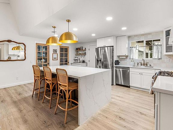 This fully remodeled single-story 4-bedroom, 2-bathroom home seamlessly combines modern style, thoughtful upgrades, and the luxury of a spacious lot with solar! The exterior shines with fresh paint, a new front porch and deck, lush landscaping, a newer roof, and a terraced backyard featuring a fire pit and an expansive deck—perfect for entertaining! Step inside to vaulted ceilings, engineered vinyl plank flooring, fresh paint, custom closets, and upgraded lighting throughout. The open-concept kitchen is the heart of the home, featuring a large island, quartzite countertops, custom cabinetry, stainless steel LG appliances, a walk-in pantry, and a structural beam added for a sleek and functional design. Stylishly updated bathrooms and multiple French doors create a seamless indoor-outdoor flow, enhancing the home’s charm and livability. Conveniently located near Hwy 125, schools, dining, and shopping, this move-in-ready gem is a must-see!