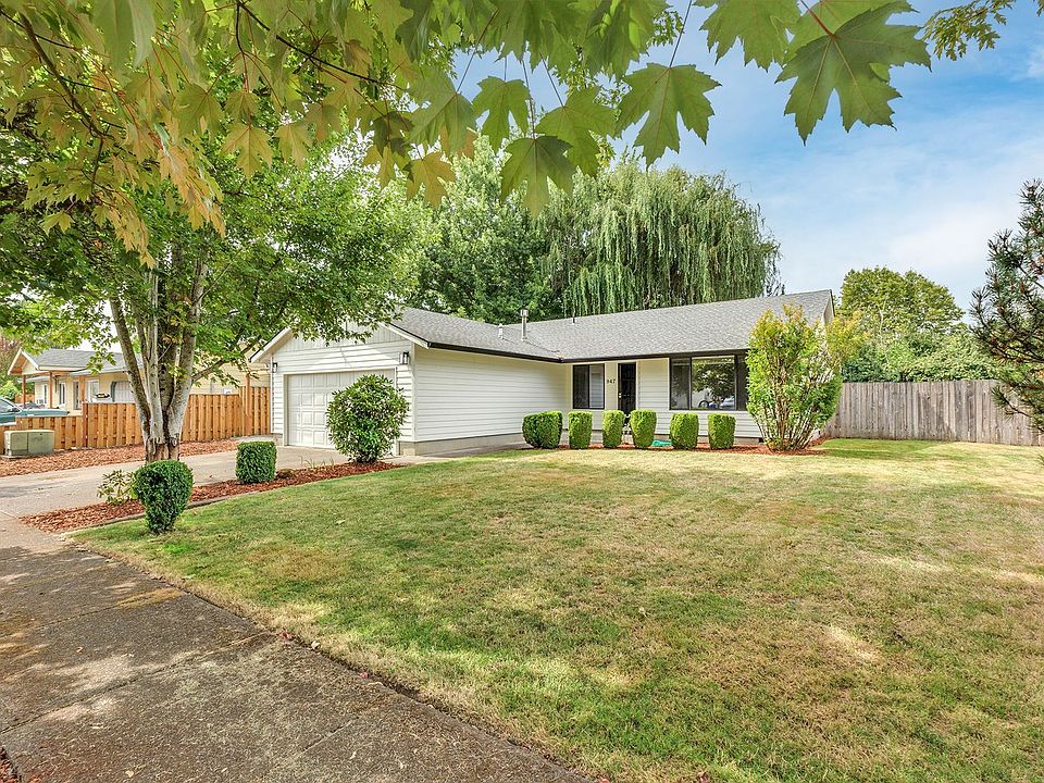 This spacious single level house in well established neighborhood. Entry into living room with large picture window. Large open kitchen opens to large dining area with access to the backyard. Primary bedroom with floor to ceiling mirrored closet, access to backyard plus private bathroom. Two additional bedrooms and one full bathroom off of the hall. Laundry closet off of the hall as well with full size hook ups. Additional features of this home include 2 car garage, fully fenced backyard.