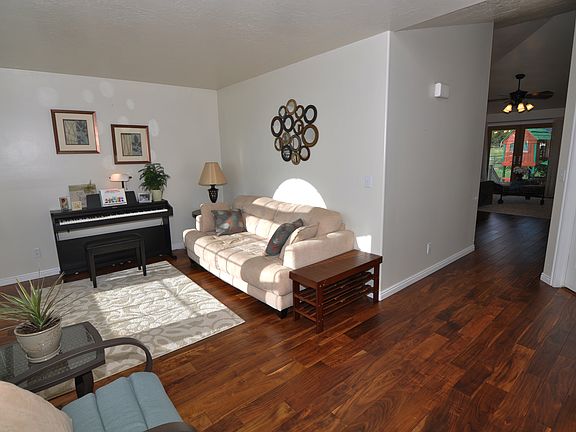 Charming rambler in a beautiful, quiet neighborhood, across the street from one of Utah's finest elementary schools (Heritage Elementary with excellent language immersion program). Main floor living, exotic hardwood floor throughout. Updated kitchen, new stainless steel appliances, carpet, hardwood floor, garage door and opener, light fixtures, dimmer switches, granite counter tops... (all in 2014). Less than 5 mins. to shopping, I-15,... Impeccably maintained, move-in ready. Well-manicured landscaping throughout. Mature, productive garden with fruit trees and water fountain. Two sheds, playset for kids in back yard. Buyer to verify all information. No HOA.