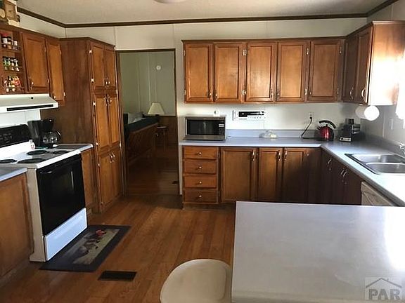 This is one of the nicest modular home in Pueblo West. Located on a double lot @ 1/3 Acre+/_ New wood floors, new electric range, updated baths. Three large bedrooms with two baths. Two wood burning fireplaces..