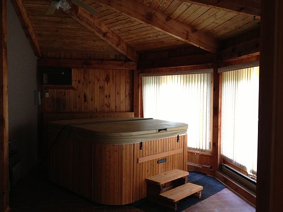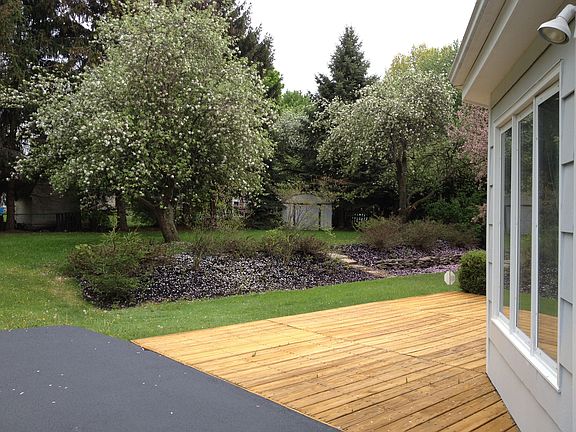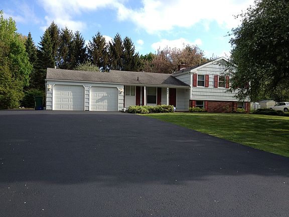 This 1320 square foot single family split level home built in 1969 on .41 acres (17,859 sq ft) has 3 bedrooms and 1.5 bathrooms, attached heated 2 car garage, large paved driveway that can accommodate trailers, campers or motor homes extends 40 ft aside the house, central air, alarm system, finished basement, fireplace, and 6 person Jacuzzi in separate beautiful knotty pine room overlooking back deck and park-like back yard. This home has been recently painted inside and outside with the following appliances included: stove, refrigerator, washer, dryer, dehumidifier.