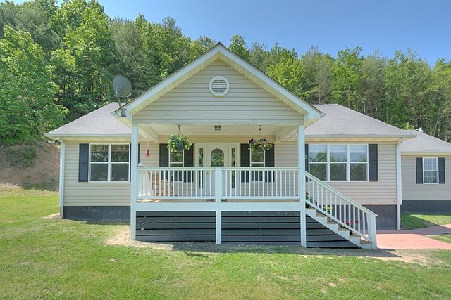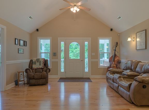 More than move-in ready home offers views and tons of privacy. Multiple heating options including heat pump, gas log fireplace, and wood stove. Master bedroom boasts both jetted tub and separate shower. Open floor plan with newer hardwood flooring and vaulted ceilings. Enjoy the views from your 35 acre retreat from the large covered front porch or exploring trails to the top to hike or hunt. Professionally conditioned crawl space offers added condition storage and adds to energy efficiency. Gas logs in family room AND wood stove in dining area.