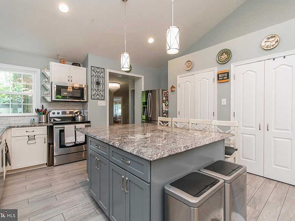 Welcome to a truly unique and beautifully updated ranch home in Southampton. Stunning entry leads you into a large, living room with hardwood floors, recessed lighting, large windows for plenty of natural light, and stone fireplace with gas insert. Across the hall is the master suite which features a private, completely renovated bathroom and walk-in closet. The other two bedrooms on the first floor boast hardwood flooring with overhead lighting and highlight an elegantly designed Jack and Jill bathroom. Continue through a sitting area which provides another wonderful view of the surrounding nature. Custom and remote-controlled blinds are found throughout the home. The spacious kitchen was designed with the hope of every desired accommodation ~ Large island with granite countertops, marble backsplash, stainless steel appliances, modern lighting and fixtures, tons of pantry space, and bonus ~side room~ for any other storage needs. The lower level with walk-out to the backyard also features a stone fireplace with gas insert. The fourth bedroom and updated full bathroom allow for this area to be suitable for an altogether separate living space. Plenty of storage! Another ~must-see~ of this property? The backyard is a wooded oasis with a stream that runs through (no flood insurance required). A stone bridge leads you over the water and directly to your private outdoor firepit area. A second entertainment area is located just to the side of the house, surrounded by stone walls and charming iron fencing. Not to be forgotten is the driveway which can easily park six vehicles. This property consists of two parcels which total .76 acres.