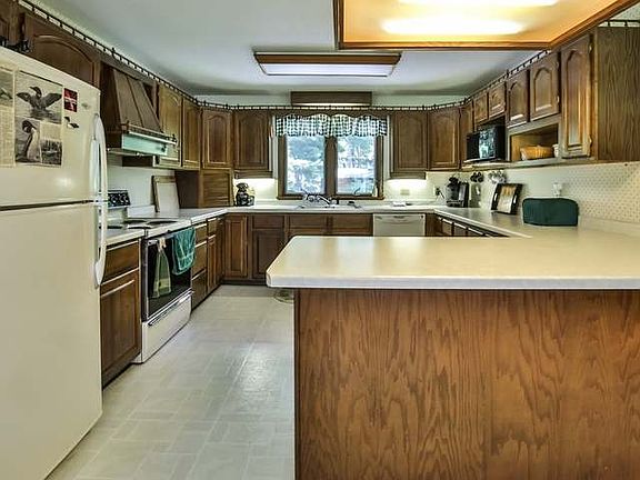 Premier Minocqua Chain of Lakes, Minocqua Lake - located 1/2 mile from Downtown Minocqua, walk to town for your morning coffee. The home has the big advantage of having city sewer and water, has been exceptionally well maintained and offers great lake views. The home offers a spacious family size kitchen and large dining area to fit your largest of tables.The home features 4 bedrooms 3 baths with large master bedroom/bath suite with Jacuzzi tub, steam shower and walk-in closet. The living room with its pecky cypress walls, cathedral ceilings and stone fireplace and wet bar along with some great views of the lake makes this a wonderful gathering place for all your family and friends. Very moderate slop to sand frontage. Also on the lakefront is a dry boathouse for all your lakefront storage. This is a special home - Lakefront Living can be yours!