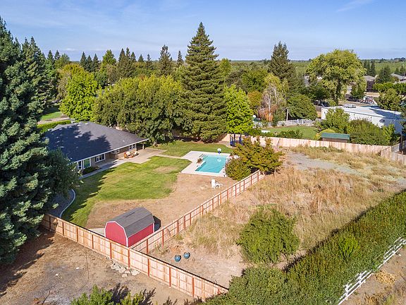 This is the home you have been waiting for - the rare find that meets ALL of your requirements! Hard to find 4 bedrooms PLUS an office, over an acre, remodeled and updated throughout, RV parking, 3- car garage and an in ground pool! This spacious home is on a cul-de-sac conveniently located next to Durham schools, restaurants and shopping. Beautifully landscaped yard with ample driveway and street parking. There are double gates for RV access with plenty of room for all of your toys. On the other side of the home, there are fruit trees and irrigated raised garden beds. Huge back yard is fully fenced and cross-fenced with a in-ground swimming pool & cabana plus a detached storage shed/shop. Beyond the first fence is extra space perfect for fruit trees, 4-H project or just a privacy buffer! The interior of the home will not disappoint. There is wood laminate flooring and recessed lighting throughout. The spacious kitchen offers an abundance of storage space, including a walk-in pantry. Kitchen is open to dining and family rooms. Floor plan is split with a full bathroom and bedroom perfect for a guests. The guest and hall bathrooms have been beautifully remodeled as has the large laundry room which includes extra storage and a utility sink. The master bedroom has beautiful views of the back yard and features two walk-in closets. There are double sinks and a Jacuzzi tub in the master bath. You are going to want to see this one!