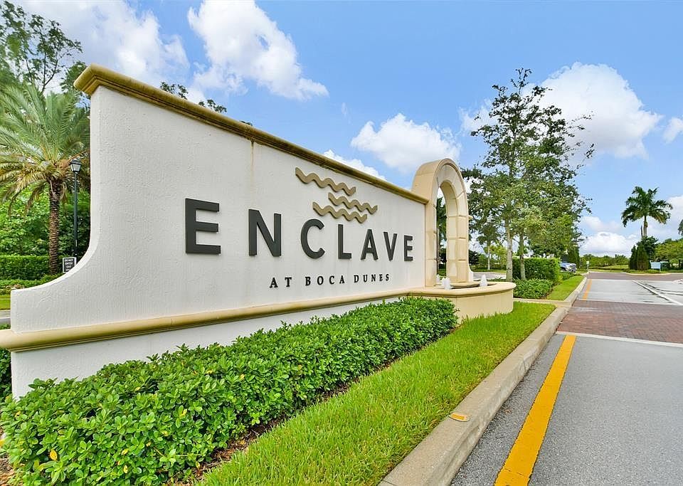 Stunning 2019 townhome located in the highly desirable Enclave at Boca Dunes! This beautiful 3-bedroom, 2.5-bathroom END unit boasts a modern, spacious floor plan with excellent finishes. The kitchen is a chef's dream with top-of-the-line stainless steel appliances, quartz countertops, and a large center island. Enjoy the Florida sunshine in your lakefront back patio, perfect for entertaining. The spacious bedrooms offer ample closet space and the master suite includes a spa-like en-suite bathroom. Additional features include a 1-car garage and hurricane impact windows. The Enclave features resort-style amenities that include a clubhouse, pool, spa, billiards room, children's play area, walking paths, and a state-of-the-art fitness center. Great rated school area yes
