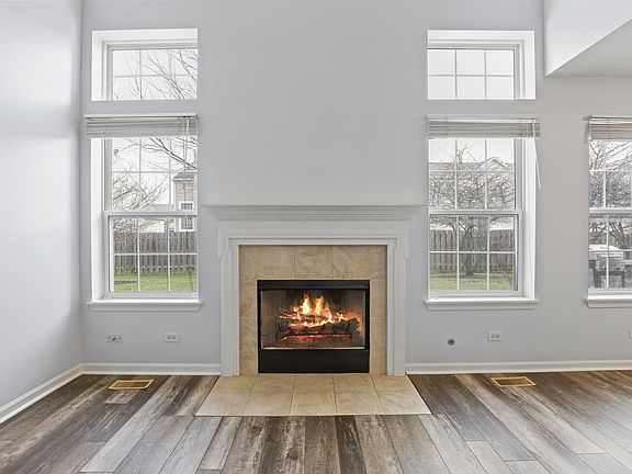 Move right in! This turn- key property is featuring 1,600 square feet, three bed rooms & two and a half bath rooms. Special features include vaulted ceilings, laminate vinyl plank flooring throughout the entire main level, fire place, floor to ceiling windows supplying tons of natural light, stainless steel kitchen appliances, second level laundry & much more! A combined kitchen & dining area open up to the sliding door leading right out to a private patio & yard space. The home also has a 2 car garage with the utility room conveniently located within. Upstairs all three bed rooms are generously sized & offer ample closet space. The primary bedroom has french doors, a huge walk in closet & an ensuite bathroom with large vanity, bath tub & shower shower combo. Close to I90 & just minutes to Randall Rd. for all shopping and entertainment. Move right into the wonderful Covington Lakes community today!