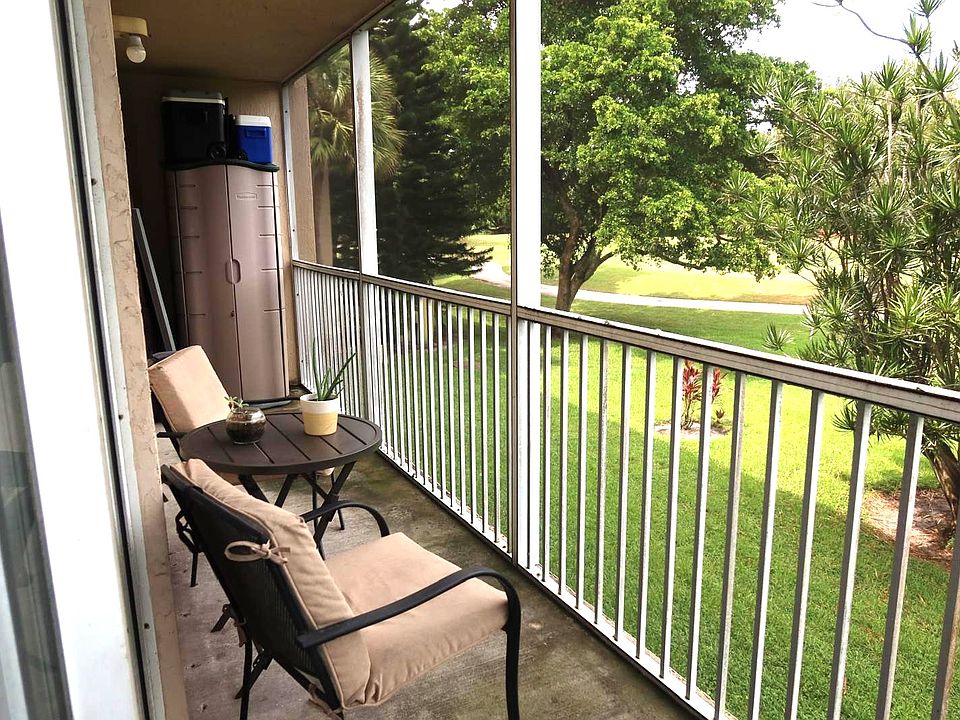 Your Dream Apartment Awaits: Golf Course Views and Premium Amenities! Imagine waking up to a stunning view of the golf course every morning from the comfort of your Master Bedroom, complete with an expansive walk-in closet. This beautifully maintained 2 bedroom, 2 full bathroom apartment is designed for comfort and convenience. Step inside an abundance of natural light streaming in from the large windows and your private screened patio. The apartment is equipped with hurricane shutters for peace of mind. Doing laundry is a breeze with a dedicated walk-in laundry room right in your unit. Never worry about finding a spot with your 1 deeded parking space, plus ample guest parking for visitors. The location simply can't be beaten! Take advantage of the community pool and walking trails. You'll be minutes from major highways. Access to the area's best amenities is at your fingertips, including restaurants, Publix, Costco, bars, universities, and shopping centers. Enjoy a safe, well-kept neighborhood surrounded by serene pons- residents can even fish on-site. Don't miss the chance to make this bright, golf-course-view apartment your new home. Small pets are welcome but a subjects to HOA restrictions. Your rent includes water and sewer. The first month rent, deposit and last month rent is required after interviewing with the HOA. The tenants are subject to HOA approval, restrictions and background check. The landlord is responsible for necessary repairs resulting from normal wear and tear that cost more than $300.00.