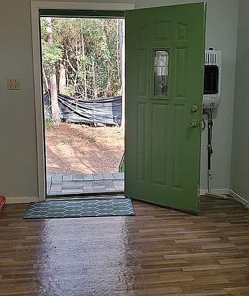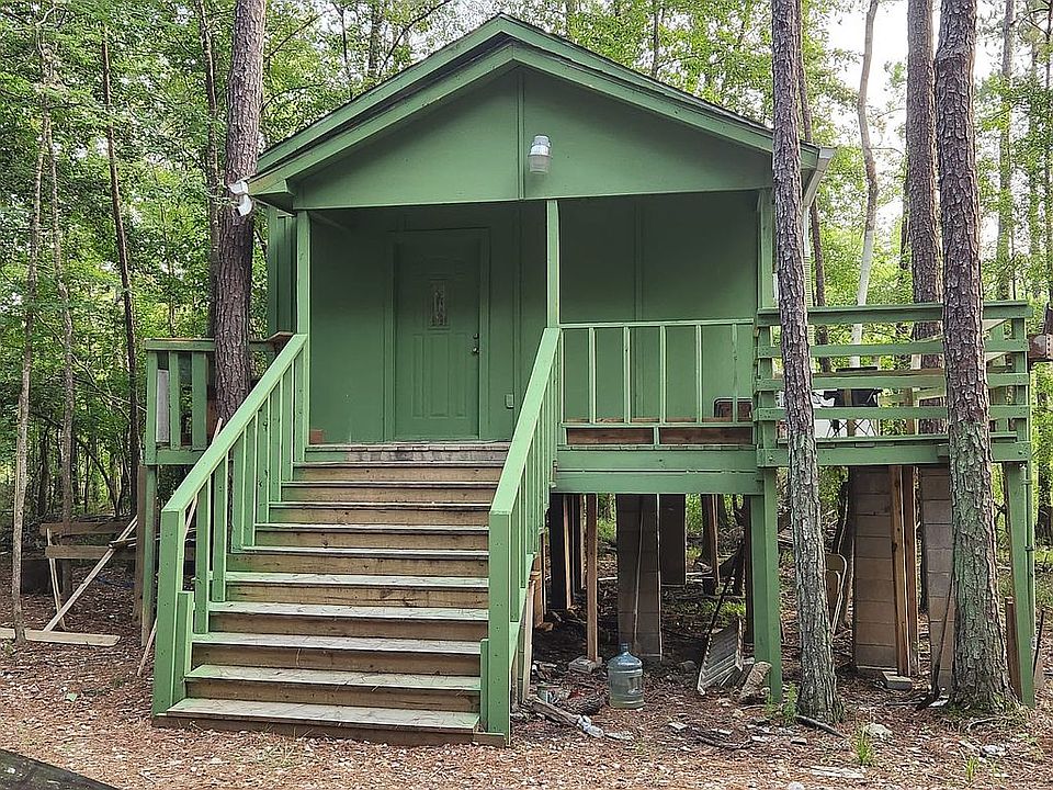 Has a kitchen one bathroom and one bedroom and a dining room. Has two a/c window unit, along with a power gas generator. This land has timberland exemption