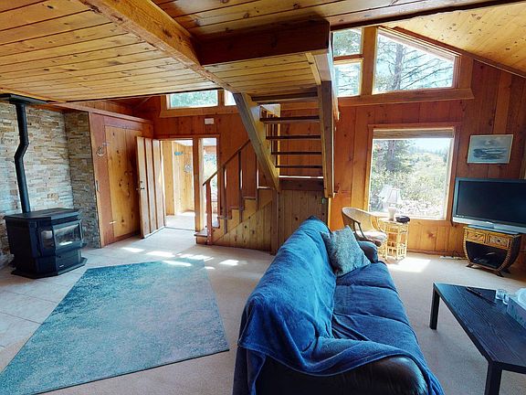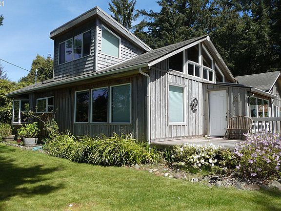 The perfect oceanview cabin retreat at the coast! Sited on an oversized lot with established vegetation and room for you and your friends (furry or non-furry!). Most living on main level with only a large loft upstairs (3rd bedroom or office). Living room has vaulted ceiling and stacked stone surround for the pellet stove. Galley kitchen with all appliances included and large dining area with slider out to the back patio area. Attached garage and a potting shed for those with a green thumb!