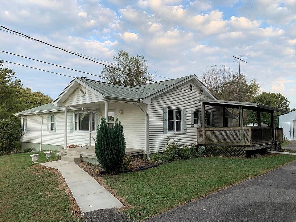 No Sunday Showings (no exceptions; office policy). Attractive and homey ranch style with rear sunroom-type addition. Central gas (propane) heat, central A/C. Lots of hardwood flooring. Vinyl tilt insulated glass windows. Covered side wood porch. Partial basement with finished den (woodburner) + unfinished basement storage area. Fantastic detached 24' x 24' metal shop/garage building. Also nice 2 room/1bath rental cottage at rear of property (has separate side street access).