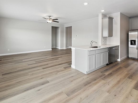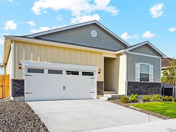 This incredible, new-construction home is located in Second Creek Farm, a beautiful neighborhood in Commerce City. This one-story home features a stylish and functional layout with three bedrooms, two bathrooms and an open-concept entertaining area. The chef-ready kitchen with its sprawling quartz breakfast bar, 42-inch wood cabinets and stainless steel appliances create a stylish and functional hub for this home. The kitchen opens to the dining room and family room, which features backyard access. This home comes with incredible upgrades included at no extra cost, such as a sprinkler system, Wi-Fi-enabled garage door opener, programmable thermostat and more. Home pictured is representative of the property that is being built.