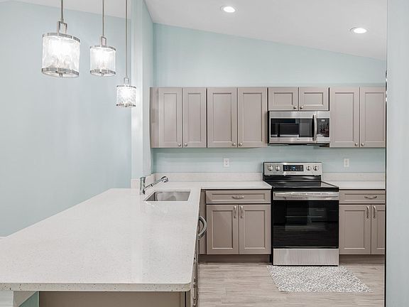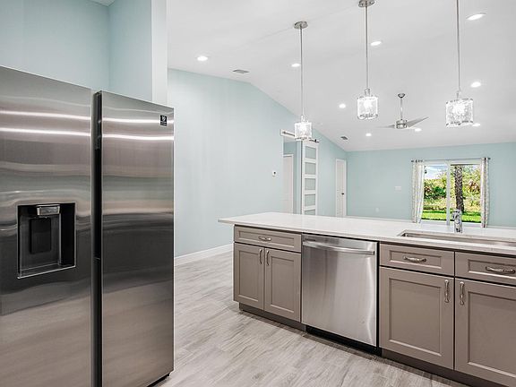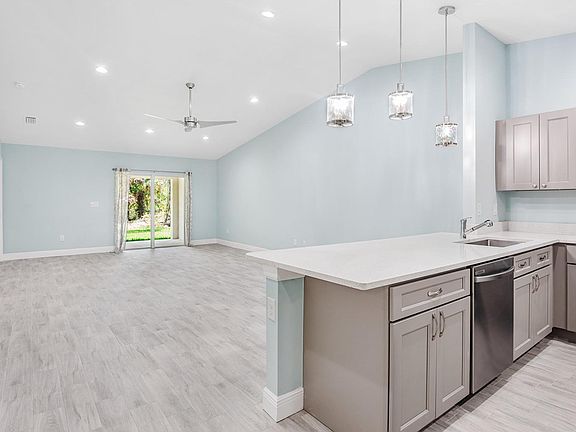 South Gulf Cove - Very nice 3 bedroom 2 bath 1 Car Garage Duplex for rent. Beautifully upgraded and now available for month to month or annual lease in South Gulf Cove. The unit has 3 bedrooms, 2 baths, and a one car garage. The unit has many upgrades including cathedral ceilings in the kitchen and living room, screened lanai, recessed lighting, tile floor and ceiling fans throughout and upgraded trim, doors and finishes. The kitchen features quartz counters, upgraded applicances and solid wood, soft close cabinets. The 3rd bedroom would also be perfect for a home office. Single floor living with no stairs, and washer / dryer hookup. Located in beautiful South Gulf Cove, close to Englewood, Port Charlotte, and Boca Grande! Near to the beaches, shopping, dining, spring training and minor league baseball! Renters responsible for utilities (water/sewer and electric). No smoking on property or storage of vehicles or trailers on property (other than driveway). Minimum credit score of 580 required. month to month lease