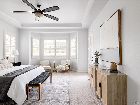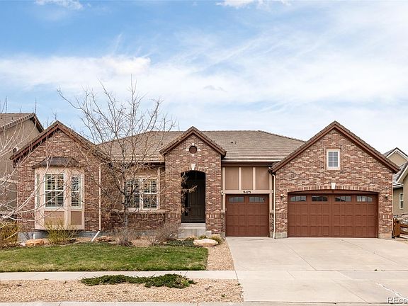 MUST SEE this GORGEOUS HOME with tons of square footage. Welcome to this captivating ranch-style home nestled in the sought after SkyView at Candelas subdivision in Arvada! Upon entering, you'll immediately appreciate the charm of this 5 Bedroom/4 Bathroom ranch-style gem. The main level graciously hosts the primary bedroom and two additional well-appointed bedrooms as well as a main floor office offering the convenience of single-level living. The elegant hardwood floors lend an air of sophistication, while abundant natural light pouring in through the windows creates a warm and inviting atmosphere. The heart of the home is a true culinary masterpiece, featuring custom cabinets, exquisite granite countertops and stainless steel appliances. Descending to the basement, you'll find a large entertaining area as well as a large bonus room with endless possibilities. Two more bedrooms in the basement provide ample space for guests, an office, or a home gym. Step outside to discover a backyard oasis that's both low-maintenance and picturesque. The artificial turf provides a lush and vibrant setting, offering a perfect space for relaxation and play. The expansive paving stone patio is an entertainer's dream, making outdoor living a true pleasure. Embrace the exceptional