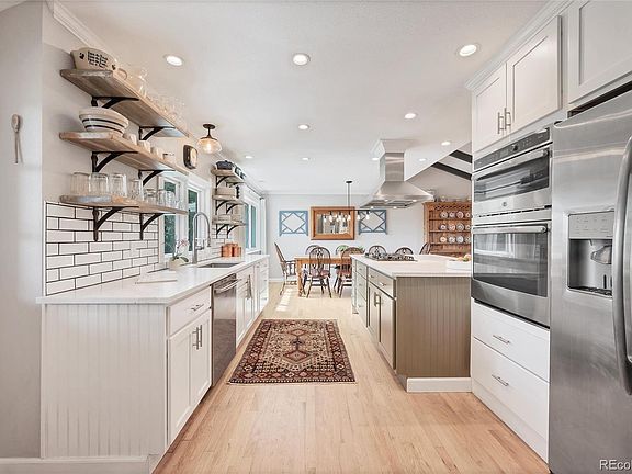 Gorgeous Updated Home on 1.5 Acres – Modern Farmhouse Meets Mid-Century Style. Fantastic opportunity to own this beautifully updated and meticulously maintained home on 1.5 usable acres in a desirable, character-rich community. This property offers a rare combination of charm, privacy, and convenience—just minutes from Sky Ridge Medical Center, Park Meadows Mall, Light Rail, top-rated schools, and the East-West Trail. Featuring a stunning kitchen which is the heart and showpiece of the home, with quality finishes and ample space—perfect for entertaining. A spacious living and dining area area are steps from a cozy family room with custom built in shelving and a wood-burning fireplace. This room opens to a patio that overlooks the scenic pasture. Upstairs, the primary suite includes a gorgeous, newer spa-like bath, and walk-in closet. Two additional bedrooms and a beautifully updated guest bath complete the upper level. The finished basement includes a private suite with egress window and a luxurious bathroom with two rooms ideal for studio, office, gym, homeschool or guest space. Outdoor living shines with a unique guitar-shaped covered patio overlooking the fenced pasture, mature pines and seasonal pond. Additional features include a rustic barn (room for two horses or extra storage), a large open sided shed perfect for chickens or honeybees or dogs. Abundant space for gardening or for playing. Truly a place to come home to, relax and enjoy. Community amenities include a riding arena and trail access. Enjoy the best of country living with city convenience, located conveniently between Castle Pines and Lone Tree you are just minutes from great shopping, dining, recreation, schools and trails. Zoned for two horses! Fabulous location with convenient commuter access too. Welcome Home!