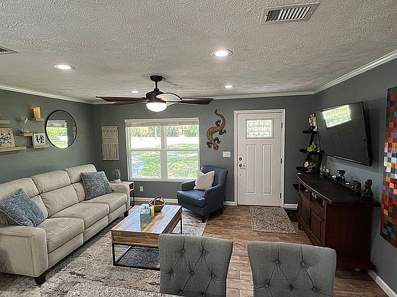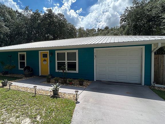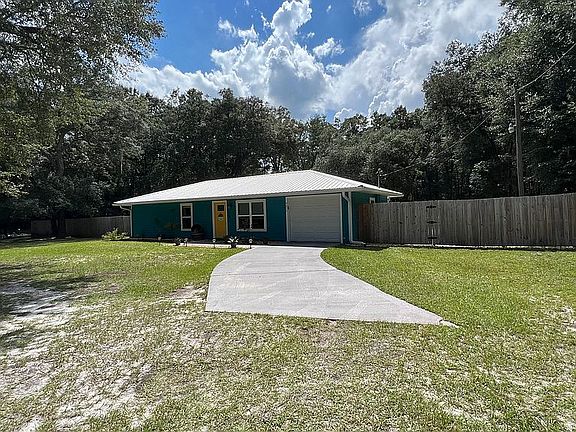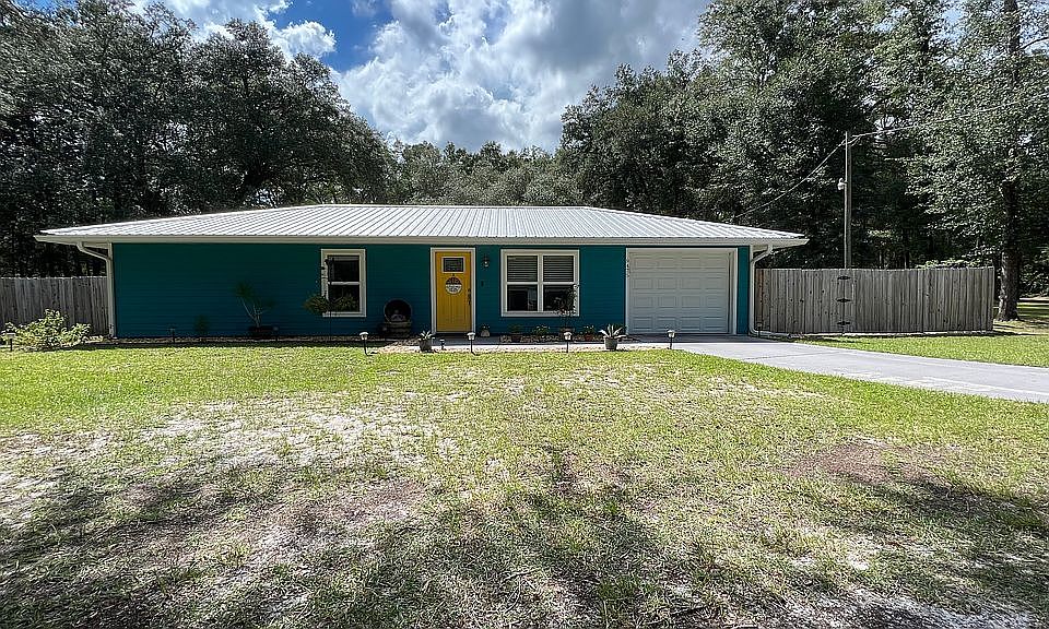 Great starter home or for someone looking to downsize. This 2/1 home with an open floor plan was completely remodeled in 2015, new a/c, water heater, wiring, floors, energy efficient insulation, etc., complete top to bottom remodel. Beautiful custom kitchen, heated and cooled garage, spacious yard complete privacy fenced with mature oaks, metal RV cover/car port and shed. Quite neighborhood only 5 miles from town, no HOA.