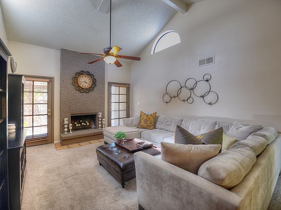 Charming Patio Home in a Desirable and Convenient Scottsdale Location! Walk in to your spacious family room with soaring ceilings, cozy fireplace and neutral decor. Fabulous kitchen features a professional stainless steel appliance package, plenty of cabinet space for storage and breakfast nook. Owner's suite offers a private exit to the back patio and an en-suite bath with two closets and a spacious vanity area. Additional guest room also provides a separate exit to the covered patio and oversized backyard - perfect for entertaining! New roof in 2011! Awesome location close to the sparkling community pool, walking/biking paths, highway access and steps away from the 11 mile long green belt that takes you all the way to old town. Do not miss out on this opportunity!
