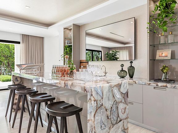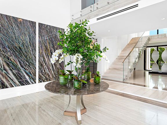 2021 Masterpiece located in one of only two private & gated Coral Gables communities. Set on almost 2 acres w 200' of water & direct ocean access, this magnificent estate has been meticulously designed for the most discerning Buyer. Spectacular soaring entry leads to six beds & 7 baths spread over 12,829 SqFt of la. Chefs kitchen is an epicurean dream w gourmet kitchen featuring gas cook-top, cooking island, food warmer, double ovens & a large window overlooking pool & waterway. Covered terraces, 2nd story terraces and expansive pool area featuring a fully equipped outdoor kitchen & dining area w BBQ grill.Gym, indoor rock climbing wall, wine cellar, full home generator & 9car garage (w height for lifts) are some of the luxuries which make this estate one of a kind. (Adj SqFt 13,212)
