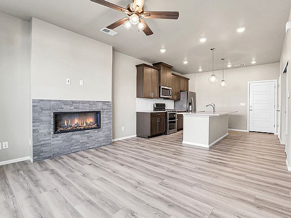This newly constructed and spacious home offers a thoughtful layout with a welcoming foyer, a cozy living room featuring a charming fireplace, and a convenient laundry room. The brand-new kitchen is a chef's dream, equipped with high-end appliances including a dishwasher, disposal, double oven, gas stove, ice maker, microwave, and refrigerator. The primary bedroom is a private retreat with an en-suite bathroom and ample closet space. Enjoy modern amenities like air conditioning, ceiling fans, and in-unit washer and dryer for added convenience. The attached 2-car garage provides secure parking, and able to fit a full size truck. While the mix of ceramic tile, laminate, and plush carpet flooring adds style throughout the home.
