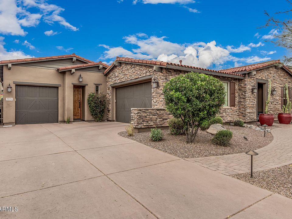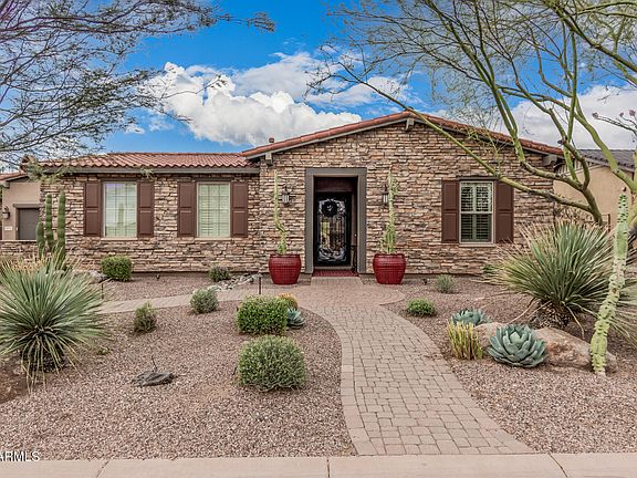 Welcome to this stunning home in the highly desirable Sera Brisa neighborhood located in the heart of DC Ranch Community without the high HOA fees of DC Ranch! 3 bed, 3.5 bath PLUS OFFICE, split floorplan with all bedrooms ensuite, with bedroom 3 perfect for guest quarters or inlaw suite offering it's own private entrance from the front of the house. This offers an exceptional blend of luxury and breathtaking green landscape. The chef's dream kitchen offers open-concept living with high ceilings, gorgeous beams and abundant natural light overlooking the gorgeous pool with breathtaking water features. The spacious primary suite offers a spa-like bath with his and hers walk-In closets. The resort-like backyard retreat offers pool, spa, fire pit, large covered patio, gas bbq & lush landsca The home is perfect for those wanting to entertain with surround sound throughout the home and the backyard, misting system on the back patio, inside courtyard with gas fire pit, outside fire pit with elevated patio. This home also offers a true 3-Car Garage with one 2 car bay and one 1 car bay. Sera Brisa is located in the heart of DC Ranch but is not included in the DC Ranch HOA making trasnfer fees and monthly HOA fees much lower than those in DC Ranch.