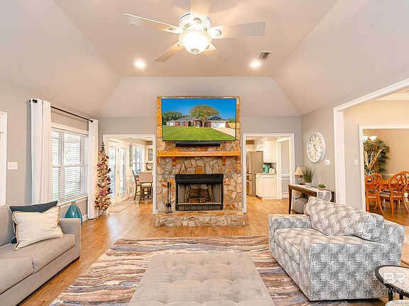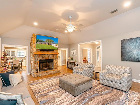 Custom built Oasis with a stocked pond and an inground pool on over an acre! If you are looking to live full time in a dream retreat, look no further! This custom-built home offers the perfect blend of low maintenance and luxury. Step outside and enjoy sitting in the covered patio overlooking the inground pool and pond. With the symmetrical trees and landscaping it makes for a relaxing and scenic view. Your home will be the perfect place for entertaining and cook outs!Stepping inside, the kitchen and pantry is just as amazing. Featuring custom-built cabinetry that includes the best of modern conveniences. These include pull out drawers in cabinets and fold out expanding shelves for storage. Beautiful stone countertops supported by decorative corbels make the kitchen impressive while glass tile backsplash sets the look. This home has a gas range, and stainless steel appliances.The living room is spacious and French doors bring the light and view into the living room. A stacked stone fireplace, and high ceilings create ambiance from within. A formal dining room and home office is also provided.All of the bedrooms are a good size and offer a split floor plan. While the primary bedroom is, of course, the most impressive. With an oversized room that can accommodate large furniture, two spacious closets and an impressive primary bath. The bath offers a large soaking tub, and walk in shower. This home has two large workshop buildings, that will remain. Perfect for projects or storage. A well has also been installed to service the pool and pond. This home truly has it all! Call today for your private showing!All measurements are approximate and not guaranteed, buyer to verify. Buyer to verify all information during due diligence.