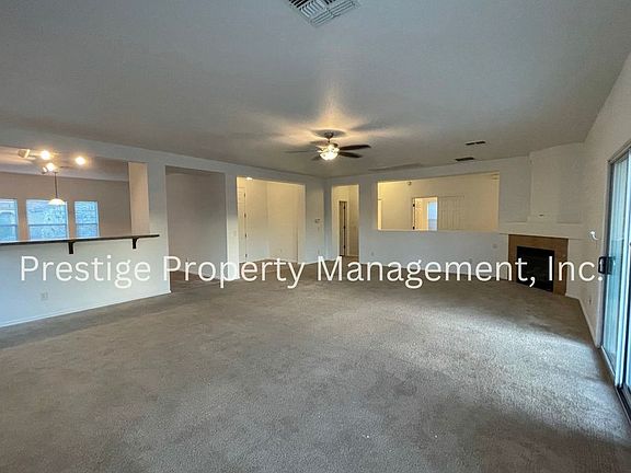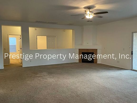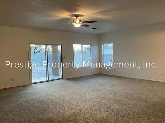 Welcome to this lovely home located in the vibrant city of Tucson, AZ. This spacious 2045 sq ft home features 3 bedrooms with a den and 2 full bathrooms. The master bedroom boasts a walk-in closet, providing extra storage space. The home is designed with an open floor plan, enhancing the sense of space and light. The eat-in kitchen, complete with a breakfast bar, is perfect for casual dining and entertaining. The property is equipped with ceiling fans throughout, ensuring comfort during the warmer months. Outside, you'll find a double garage, a covered patio perfect for outdoor relaxation, and a block walled yard. The low maintenance landscaping adds to the home's curb appeal without the added upkeep. The home also includes washer/dryer hookups for your convenience. This home truly checks all the boxes for comfortable and stylish living. Don't miss out on this must-see property!