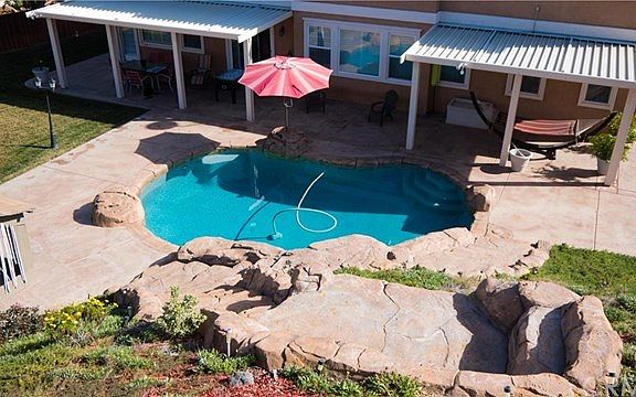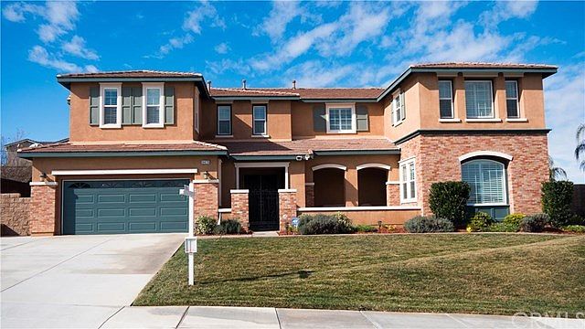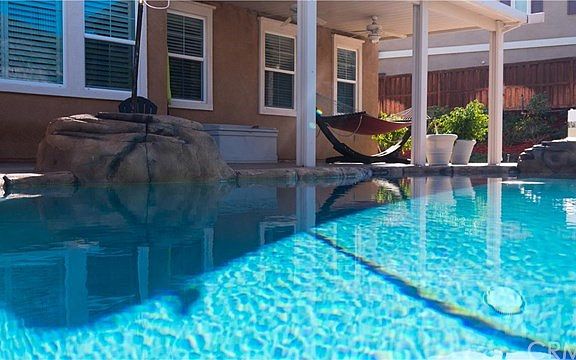 *GORGEOUS Two Story Entertainment Pool Home with awesome views in the Mission Ranch Community of Riverside* This home has 5 bedrooms and 4 1/2 baths. The combo living/dining room has soaring ceilings and windows. The family room includes a gas fireplace with an elevated hearth and a built in media center. The Master Suite is very spacious with a separate retreat, two large closets, his and her vanities, a large soaking tub and a separate shower. There are three bedrooms upstairs, one with ts own full bath. There is a bedroom downstairs with a full bath. The home has a large loft upstairs with room for a pool table. The kitchen has granite counter tops with 3 separate prep areas It has stainless steel appliances, a walk in pantry, a large picturesques window with beautiful views and a large breakfast nook. There is a laundry room with cabinets and a sink. The home has a built in beautiful rock pool with steps leading up to a seated viewing area. The backyard has two covered patio areas, built in BBQ and a large grass area. It is an entertainers dream. There is a three car garage with additional space outside for multiple vehicles. The front porch has views and a large area for seating. This home is a great family and entertaining space.