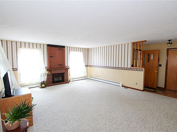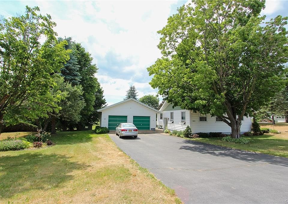 Well maintained 3 bedroom, 1 full, 1 half bath Ranch on 1-acre lot just outside Village of Croghan. Large living room with electric fireplace. Updated eat-in kitchen has plenty of cupboards and Corian Countertops making a spacious area to cook. 3 bedrooms and 1 full bath complete the 1st floor. Full basement with second kitchen, great for entertaining, storage room, half bath and living area. 2 car detached garage. Enclosed patio overlooking a beautiful backyard w/ storage shed, garden space, mature landscaping, and apple trees. This home is much bigger than it appears from the road and has a lot of potential. Great location, close to stores and village amenities.