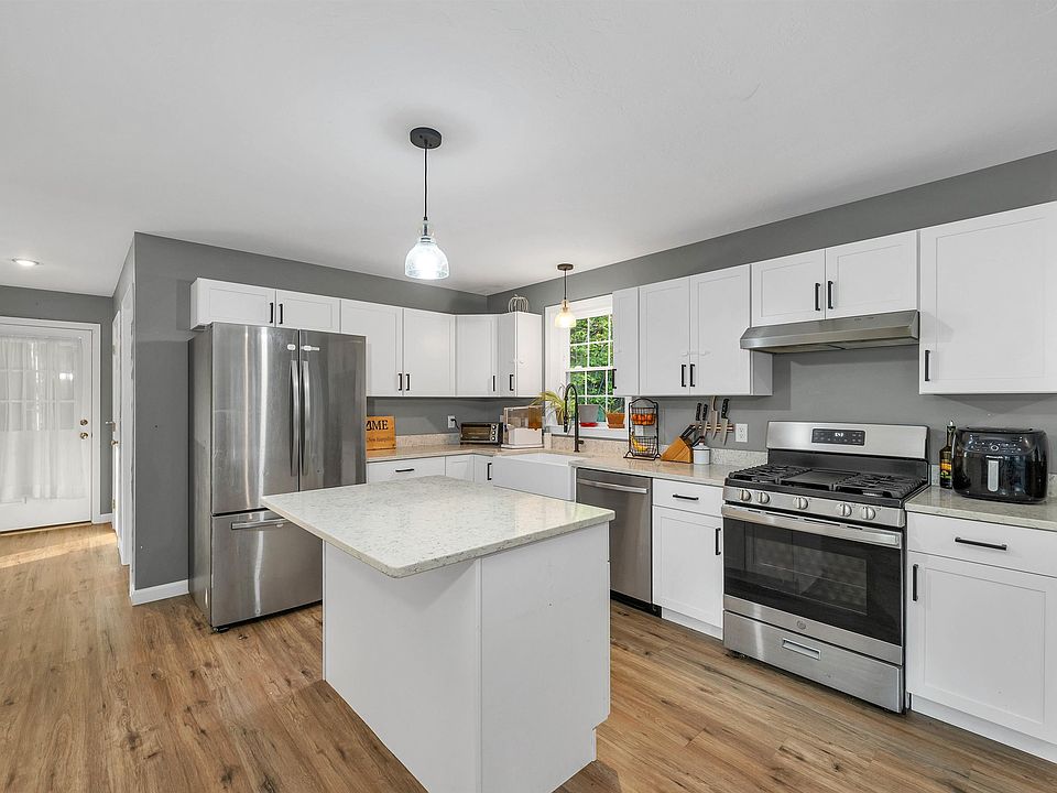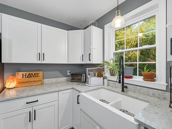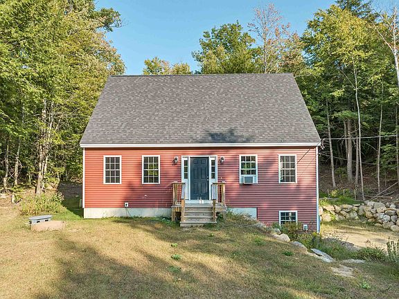 A short drive from route 28 is Beauty Hill Road, a rural, tree-lined street, home to a charming red cape built in 2022. Set on 2.49 acres, you'll enjoy a secluded property with lots of woods to explore and a long dirt driveway for privacy while still being close to amenities. This home has a fantastic layout with flexibility to fit your needs. If a balance of open concept living yet still having defined rooms is up your alley, you'll want to schedule a showing! The kitchen includes stainless steel appliances, a farm sink, ample cabinetry, and a large island perfect for meal prep. The living room is located off the eat in kitchen which makes for easy hosting. On the other side of the first floor is a family room which would make for a great playroom, office, or flex space. The first floor is complete with a half bath and laundry. Upstairs you'll find the primary and two additional bedrooms for separation from the main living areas. The home is complete with a back deck and an easy to maintain yard with plenty of woods for privacy or to open up. The 2 car garage is ready for New England winters. Located in the heart of Barnstead, you'll get to enjoy the nearby lakes, hiking trails, and charming small-town community. This home offers the perfect escape for those seeking a peaceful lifestyle without sacrificing convenience. Showings start immediately! Open house Saturday 9/21 11:00-12:30