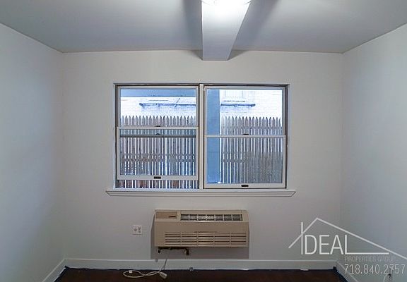 Come into a big open kitchen and living room space, passing two BIG double door closets with hanging rails, and you will be tempted to open the screened sliding door and straight out onto your very own, LARGE covered terrace that has fencing round it for added privacy. Put a table on it and a plant or two and enjoy the outdoors. Certainly a nice spot for a barbeque! Back inside the living room there is a cable TV point, wall-mounted heat / AC unit and another closet containing the hot water tank but with easily enough space to store useful odds and ends think your vacuum cleaner and cleaning supplies! The kitchen has a 4-ring range and oven, extractor fan, fridge/freezer and plenty of cupboard space. The bathroom has a glass sink unit, WC, wall-mounted mirror unit and tub/shower. The large, well-proportioned bedroom will easily fit a king-size bed. There is a double door closet, heat / AC unit and double glazed window overlooking the terrace. Sorry, no pets. Utilities not included. This modern, elevator building is a great place to live in the historic area of Ditmas Park. Enjoy a walk round the neighborhood's leafy blocks where beautiful Victorian houses are in abundance. You have all of the amenities of Coney Island Avenue right there e.g. a laundromat opposite, delis, a supermarket; a great coffee shop (Milk and Honey Cafe) on Newkirk Avenue and the shops/pharmacies of Newkirk Plaza. The bustling Cortelyou Road is three blocks away. Transportation options include the B/Q line at Newkirk Plaza; B68 up to Windsor Terrace; B103 Limited to Downtown Brooklyn. Come and see what this modern Ditmas Park apartment has to offer and make it yours today!