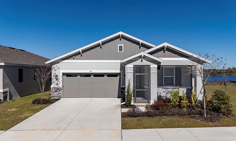 This stunning 2-year-young 4 bedrooms and 2 full baths sit on a highly coveted Premium Corner Lot with a serene Lake View, offering extra privacy and beautiful scenery. From the moment you open the front door, you are greeted by an incredible view of the lake through the expansive living room windows, filling the entire home with plenty of natural light. Conveniently located just steps from the community mailbox and playground, this is NOT a 'base model' home; it features over $43,000 in premium Home Gallery selections plus high-end custom improvements! The community Eden Hills is strategically situated near Auburndale and Winter Haven with easy access to I-4 and Orlando—modern living with perfect small-town charm. The interior is a true chef’s delight featuring quartz countertops, a large center island, 42" upper cabinets, stainless-steel appliances, an exterior kitchen vent, and a spacious walk-in pantry. Luxurious vinyl plank flooring runs throughout the primary bedroom and all main living areas, with cozy carpet in the three guest rooms. Designer ceiling fans are already installed in every bedroom, the living room, and the lanai. Stay worry-free with seamless gutters around the entire home and a full Ring Security system (front door, front, and back) already in place. High-end Epoxy flooring has been added to the front porch, lanai, and garage, which also comes ready for your hobbies with custom shelving installed. Step out onto your private deck to enjoy breathtaking views of Grassy Lake, the perfect advantage to watch motorboats, jet skis, and kayaks glide by in this serene waterfront setting. Don’t miss your chance to own this nearly new, designer-upgraded property with excellent community amenities and a very low HOA. Schedule a tour and move in today!"