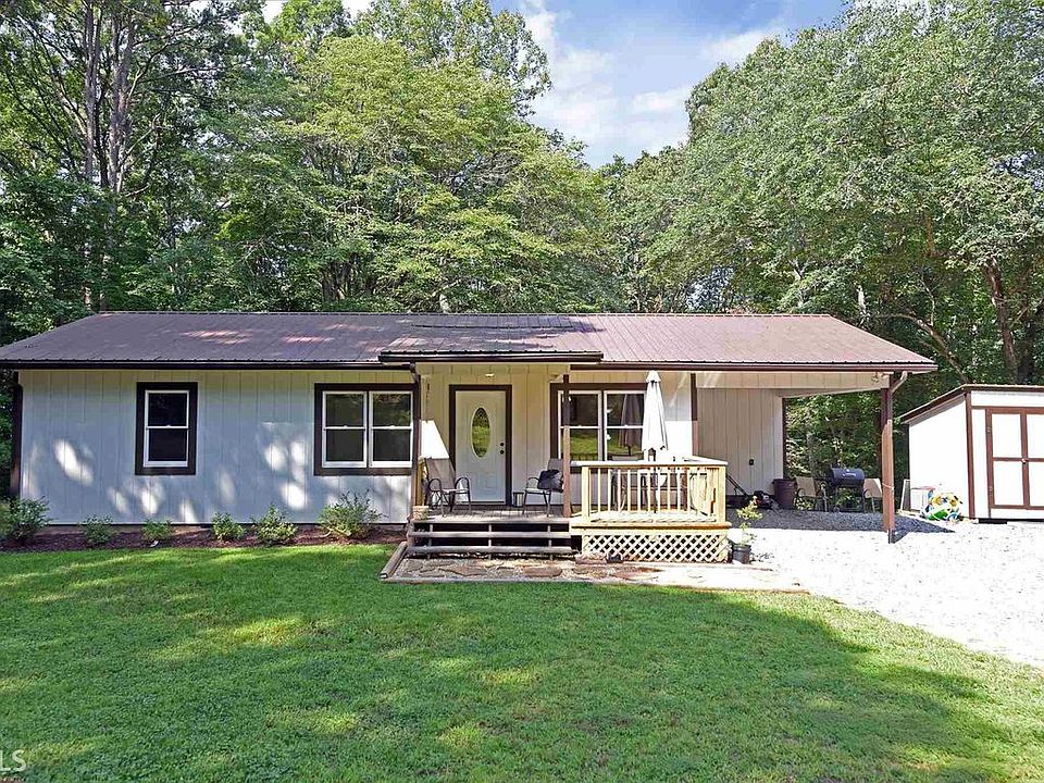 Easy Living Traditional Starter Home. This 3BR 1BA home has One Level Living. Nice open Kitchen and dining room, Laminate floors in LR and Hall. Spacious laundry/pantry room that would make an excellent location for a 2nd bath. Generous closets. Seller replaced Windows, flooring, repainted inside and out. New interior doors. Updated Bath. Has a metal roof, lots of garden potential. 1 acre, large crawl space with vapor barrier. 1 Car attached carport and detached storage shed. NO HOA!!!! Private well. Call it home. Only 2 miles to TVA Lake Access on Nottley. FIBER OPTICS!!!!