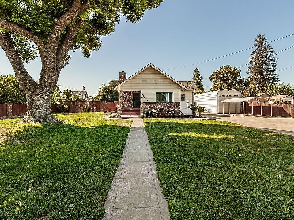 Experience this spectacular 3 bedroom/ 2 bath home with a 2 car garage located on an over 17,000 sq ft lot in Kingsburg. There is a large shop with pass thru garage doors spanning an impressive length with enough space to house a 36 ft motorhome and offers an unparalleled canvas for your needs. The upgrades on this cute property also include new windows, new HVAC system, owned solar, new water heater, new rain gutters with leaf guards, a cellar, and 3 extensive covered storage areas on the property besides the shop and the garage. A sparkling pool is a beautiful addition to the large backyard along with a covered patio and fruit/ nut trees. View this charming property in person to experience all it has to offer.