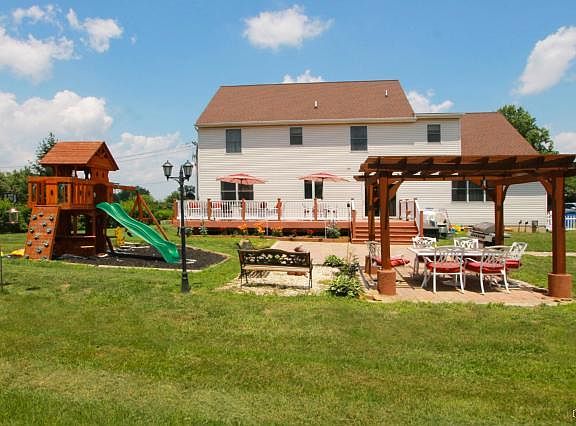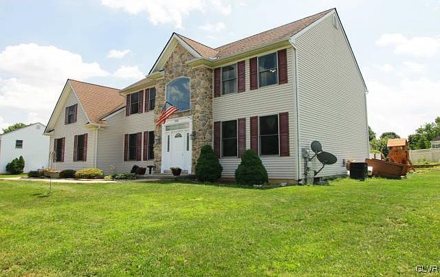 Modern, stone front 6 Bedroom Colonial Home in East Penn Schools! Large, fantastic backyard with a very large deck, patio, pergola, shed, and playground! Spacious, bright maple kitchen with updated appliances and breakfast area, and is open to the family room with a fireplace and hardwood floors. Master Bedroom Suite with spacious bath and 2 extra finished rooms for your use, as an office, exercise room, sitting area or walk-in closet! Great sized bedrooms plus an office. Partially finished lower level adds to the living area. A lot of home for the money and this one is priced right! Easy access to I-78 and Rt. 309.