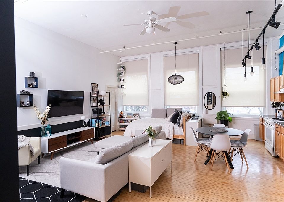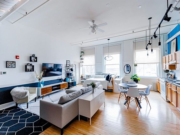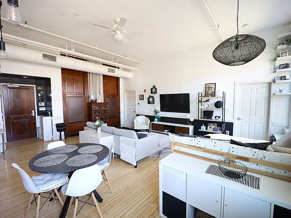 Rare opportunity to buy into the "Nathaniel Banks Condominiums". This New York loft style one bedroom condo has soaring ceilings accented by brand-new insulated almost floor to ceiling windows. Open floor plan, efficient heating and air-conditioning systems, reasonable condo fees, currently no assessments outstanding. Well managed, you will not believe the amenities that accompany ownership in this Condo - full gymnasium, and incredible auditorium complete with a stage, perfect for your private birthday parties. Comes with a 2 deeded parking spaces, and a large convenient storage unit. Close to everything, including the newly completed Rail Trail and the fabulous trails and vistas at the Prospect Hill Park.