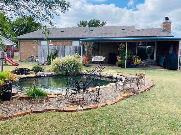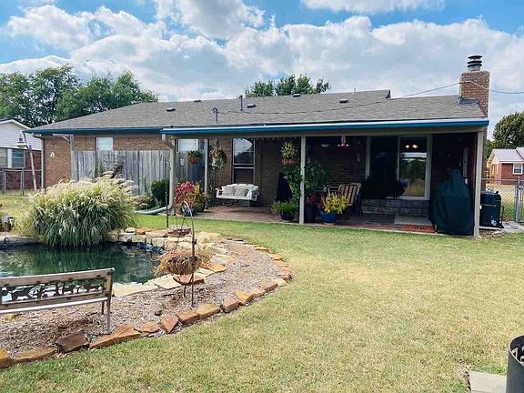Beautiful Family Home! Well Maintained on a one block street. Enter into the spacious Great Room with a vaulted ceiling & small room adjacent. The hallway leads into the kitchen/family room. It boasts an eating bar, window seat, wood burning fireplace & a door to the covered tile patio. Bedrooms have carpet flooring. Laminate & tile flooring throughout remainder of house. Updated main bathroom. Master bedroom features three closets & 2 ceiling fans. Enjoy the large backyard with a fishpond.