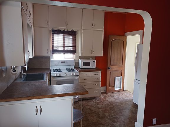 Nice house with 2 seperate living areas with seperate entrances. 2 bed 1 bath upstairs and 1 bed 1 bath downstairs. Both have a kitchen and living room. Walking distance to downtown and very close to a park. Off street parking for at least 2 cars as well as enough r.v. parking for all of your toys. 2 car detached garage. Fenced backyard with a shed. 1 year lease. Pets are allowed. Dog doors are already installed. No smoking allowed. Renter must maintain the lawn.