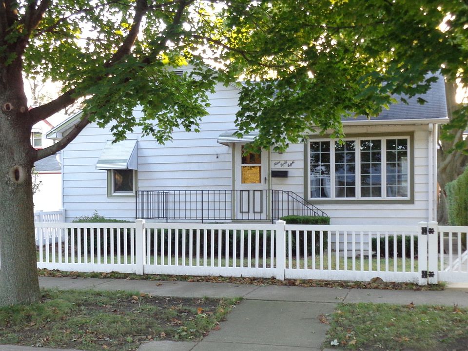 Cute 3 bedroom, 1 bath ranch located on a double fenced lot. Large front porch, hardwood floors, tons of built in storage, and basement. Sliding glass doors lead to backyard with a deck and patio space. Nice 1 car detached garage. Newer windows throughout. The double lot is great for additional outdoor space or gardening. Located within walking distance to shopping center, restaurants, and fitness center.