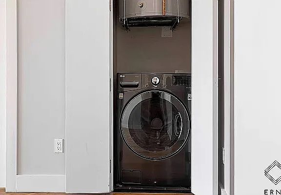 *Spacious modern ground floor 2bedroom with laundry in unit, big living room, central air, dishwasher.* Highlights include: Washer Dryer in UNIT! Large Closets Tall Ceilings TONS of Natural Light Split A/C & heat Dishwasher Stainless-Steel Appliances Hardwood Flooring Virtual Doorman Elevator Bike room Shared roof deck with amazing views of the city NO BROKER FEE