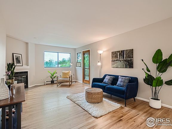 Showings start Sat 6/10. Coveted west-of-Broadway location in heart of Boulder action! This wonderful 2 bed/2 full bath condo with many great upgrades is surrounded by downtown, N Bldr Park, trails, shopping, great restaurants! Many great upgrades! Newly refinished wood floors extend through most the condo. New kitchen includes white cabinets, countertops, stainless steel appliances. Completing the look: new door hardware, mostly new lighting, interior paint, vanities, bath fixtures! Enjoy the cute balcony for summer al fresco dining. Cozy wood fireplace and room air conditioner to keep you comfortable! Bring your gear - there's also a storage unit! Off-street reserved parking space and guest parking available. Few downtown condos are on the market - don't miss this great, affordable home in a fabulous location!