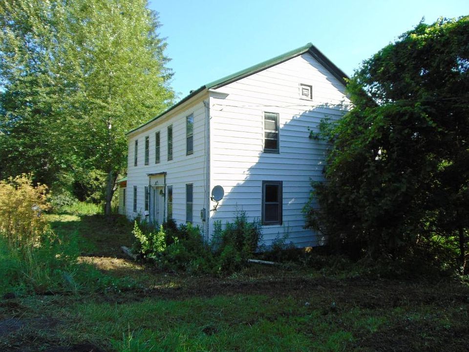 BRING YOUR MASONARY AND CARPENTRY SKILLS!! This 1850's farmhouse will need a remodel. Being soldin "AS IS, WHERE IS " condition. Some repairs have been started. Floor beams in kitchen and adjoining room have been replaced. NEWER STEEL ROOF, a few new windows. Huge LR with newly sheet rocked walls. adjoining first floor bedroom or den 1/2 bath and two additional rooms. Some cabinets and counters in kitchen, electric stove. Hookup for washer & dryer. 4 second floor bedrooms and full bath. Partial basement with (2) 275 oil tanks, furnace and hot water heater. Drilled well, septic unknown. Basement wall will need repair. No utilities on at this time.Stream borders side of property. LOW TAXES! BRING US OFFERS!! GREAT PROJECT HOME.!.