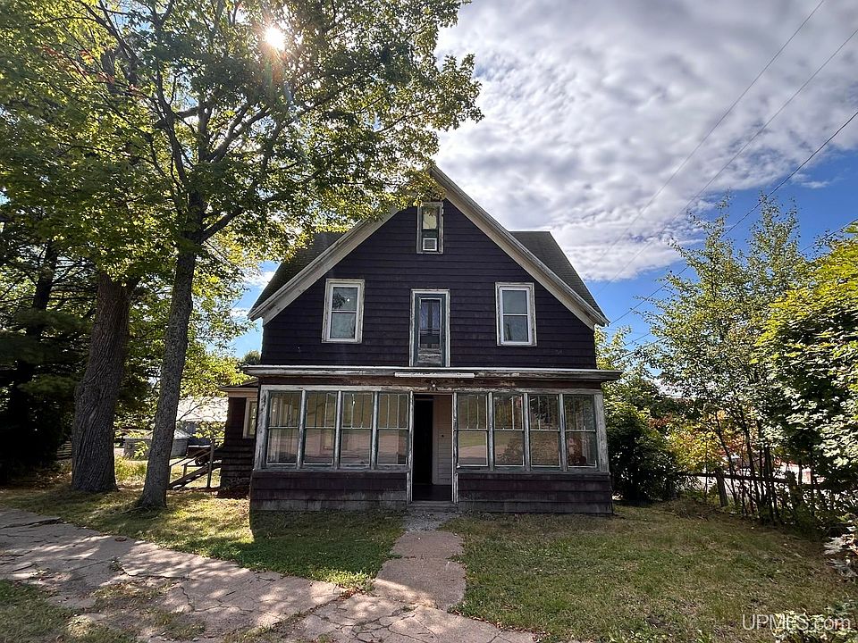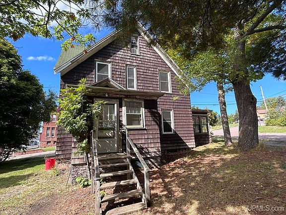 4 bedroom, 1 1/2 bath home on a large corner lot in Hancock! Move right in, grab this as an investment opportunity, or fix this one up for future use! With a location right across from the snowmobile trail, and close to downtown, there's lots of opportunity here! A huge sunporch crosses the front of this home and welcomes you through to the original front door. There are hardwood floors throughout many of main floor rooms. Generous windows let in lots of natural light. A large living/dining space and eat in kitchen flow nicely together with a pantry tucked in between. A small room up front would make a great office. There's a small half bath conveniently located just off the kitchen. The laundry room is located on a side porch that is easily accessed from the yard and parking area. Upstairs, find four bedrooms, all with beautiful hardwood floors, and a full bath with some vintage charm but with a newer tub and surround. The walk up attic is unfinished but provides tons of additional space for storage. New spray foam insulation provides some additional protection from snow and ice. In the basement, natural gas service was brought into the house and a newer boiler was installed. There is an old house on the property that will need to be demolished or could possibly be fixed up into a storage shed. NOTICE: All information believed accurate but not warranted. It is the Buyers obligation to inspect the property and verify all information. The buyer bears all risk for any inaccuracies. Tax information is subject to change. Taxes are not 0. References to square footage, lot size/dimensions, and age are approximate.