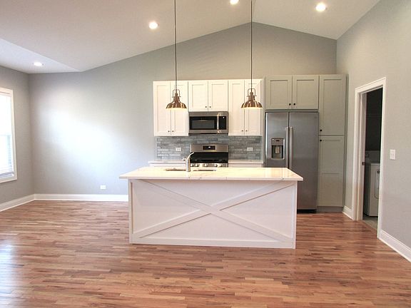 GORGEOUS BRAND-NEW HIGH-END CONSTRUCTION, RANCH 1/2 DUPLEX, LUXURY HIGH-END QUAILTY MATERIALS AND CRAFTSMANSHIP. 2 BEDROOMS, 2 FULL BATHROOMS. HIGH VAULTED CEILINGS. GORGEOUS HARDWOOD FLOORING THROUGHOUT. OPEN-CONCEPT EXTRA SPACIOUS GORGEOUS KITCHEN OVERLOOKING LARGE LIVING ROOM & DINING AREA, HIGH END TALL SOFT CLOSE SHAKER CABINETS AND DRAWERS, QUARTZ COUNTERTOPS, WIDE SPACIOUS QUARTZ BREAKFAST BAR/ISLAND, BEAUTIFUL TILE BACKSPLASH, STAINLESS-STEEL APPLIANCES, REFRIGERATOR, STOVE, BUILT IN MICROWAVE, DISHWASHER, DISPOSAL, PENDANT LIGHTS. MASTER BEDROOM SUITE WITH ITS OWN PRIVATE FULL BATHROOM THAT HAS BEAUTIFUL STONE TILE FLOORING, DOUBLE SINKS, WALK IN CLOSET. CONVENIENT MAIN LEVEL LAUNDRY ROOM WITH BEAUTIFUL CERAMIC TILED FLOORING. SPACIOUS FULL BASEMENT WITH FULL BATHROOM ROUGH-IN. LARGE CONCRETE PATIO IN THE BACKYARD. LARGE EXTRA DEEP 2 CAR ATTACHED GARAGE FULLY DRYWALLED AND PAINTED WALLS AND CEILINGS. HIGH EFFECIENCY FURNACE. CENTRAL AIR CONDITIONING. CLOSE TO DOWNTOWN MARENGO, SHOPPING, RESTAURANTS, ETC. PHOTOS ARE FROM A SIMILAR PROPERTY. LOT SIZE IS ESTIMATED. NO ASSESSMENTS, NO HOA DUES! ** MULTIPLE OFFER SITUATION, SELLER CALLING FOR HIGHEST AND BEST OFFERS BY 11/09 7 PM **