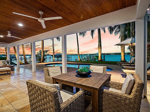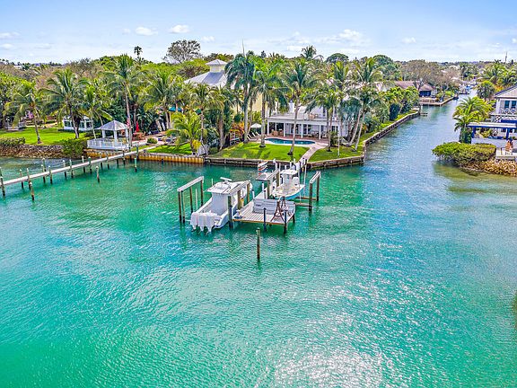 This tropical oasis offers one of the best and most expansive blue water views available on the Loxahatchee River! Featuring a bright, open kitchen concept with multiple entertaining areas inside and out. Enjoy the large lanai overlooking the sparkling lava finished free form pool. The main level master suite has a waterfront sitting room with patio access. The second upstairs master suite has wood floors, vaulted ceiling and a fantastic balcony with panoramic river views. Detached 2 car air conditioned garage. Boating, fishing, paddle boarding is right in your backyard, with private dock, 2 boat lifts and a custom paddle board lift. Just minutes to Jupiter Inlet and all that Jupiter has to offer.