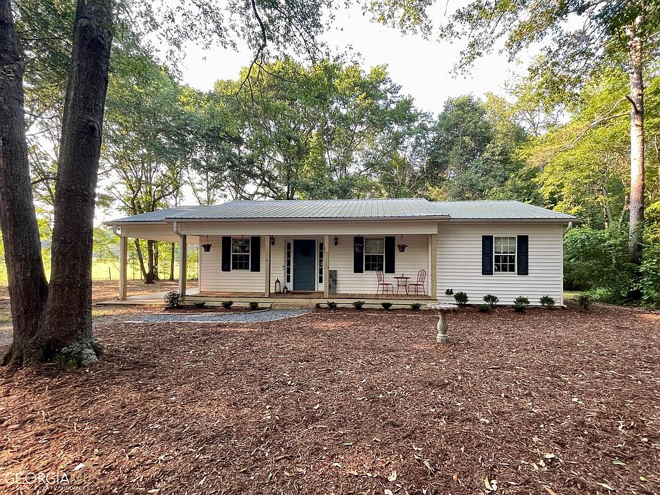 Welcome home! This adorable, well-maintained 3 bedroom, 2 bathroom ranch style home offers the perfect blend of comfort and tranquility. It is tucked privately away on 3.99 acres of mature hardwoods in Madison County. The recently updated front porch is perfect for drinking morning coffee or sitting and enjoying the peaceful scenery. Step inside to a recently updated, charming layout that features a beautiful kitchen with bar seating and a flexible living room area with luxury vinyl throughout the entire home. The spacious master bedroom features a closet and master bathroom with a separate tub and shower. In close proximity to the kitchen is a laundry room and access to the large rear deck that overlooks the serene backyard. The 30x30 workshop and utility room off the carport are a great addition to your use of the property.This home is an absolute must see!! Schedule a showing today.